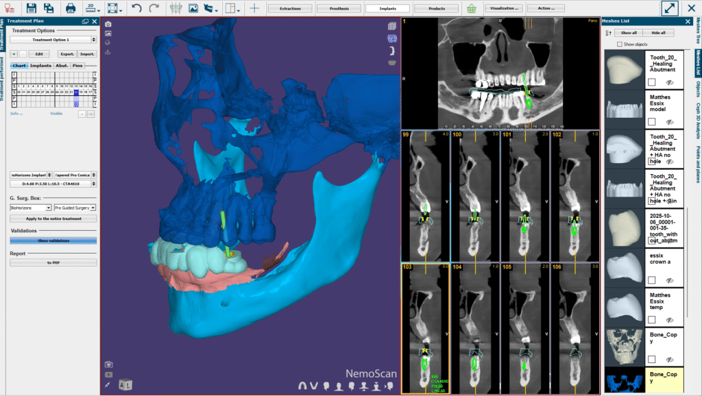 We use NemoScan Implant Planning Software from Nemotec- SPAIN, a Henry Schein Company.  NemoScan is the worlds most advanced implant planning software that gives us abilities that no other software on the market gives.